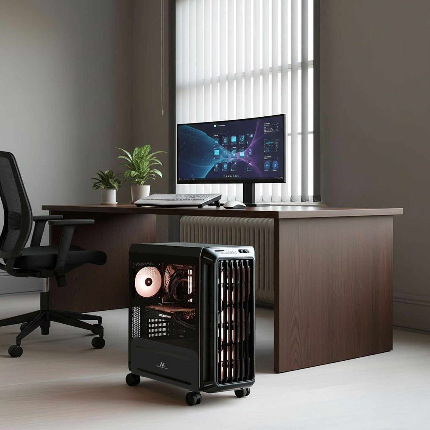 Wbudowane kółka ułatwiają przemieszczanie komputera, a także umożliwiają szybki dostęp do złączy z tyłu obudowy.
