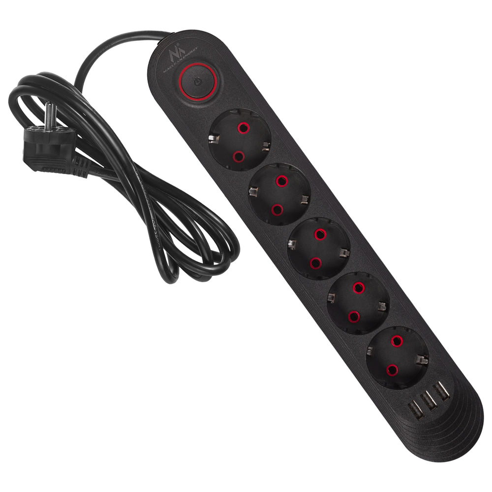 Listwa zasilająca Maclean, przedłużacz 5 gniazd + 3xUSB, 110-240V AC 50/60Hz, 2.1A max 2500W, 1,5m, czarna, MCE395 B