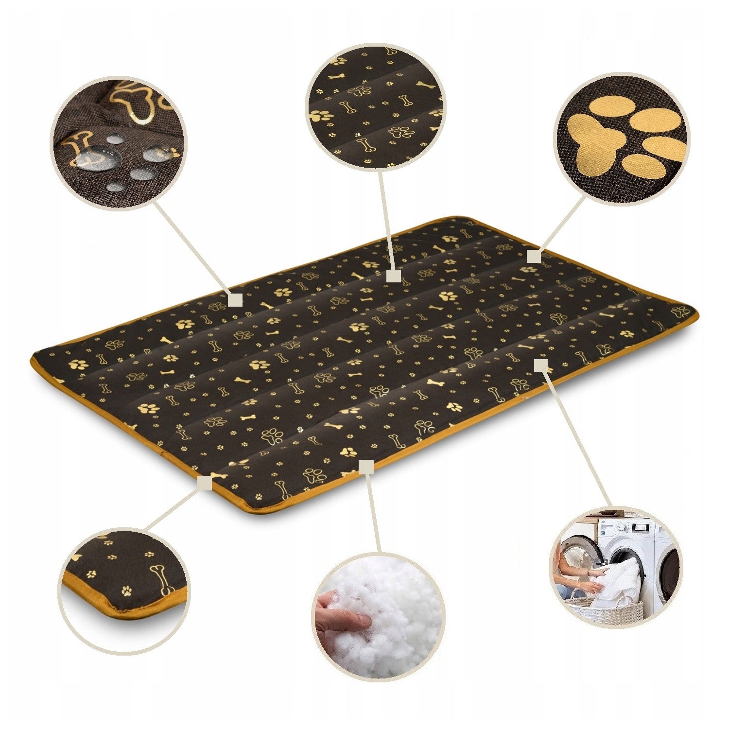 - Legowisko mata dla psa 120 x 80 cm wodoodporna AIO Kości Złote