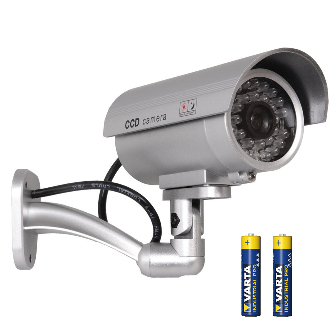 Atrapa kamery IR9000 S IR LED srebrna + 2x bateria AAA Varta Industrial