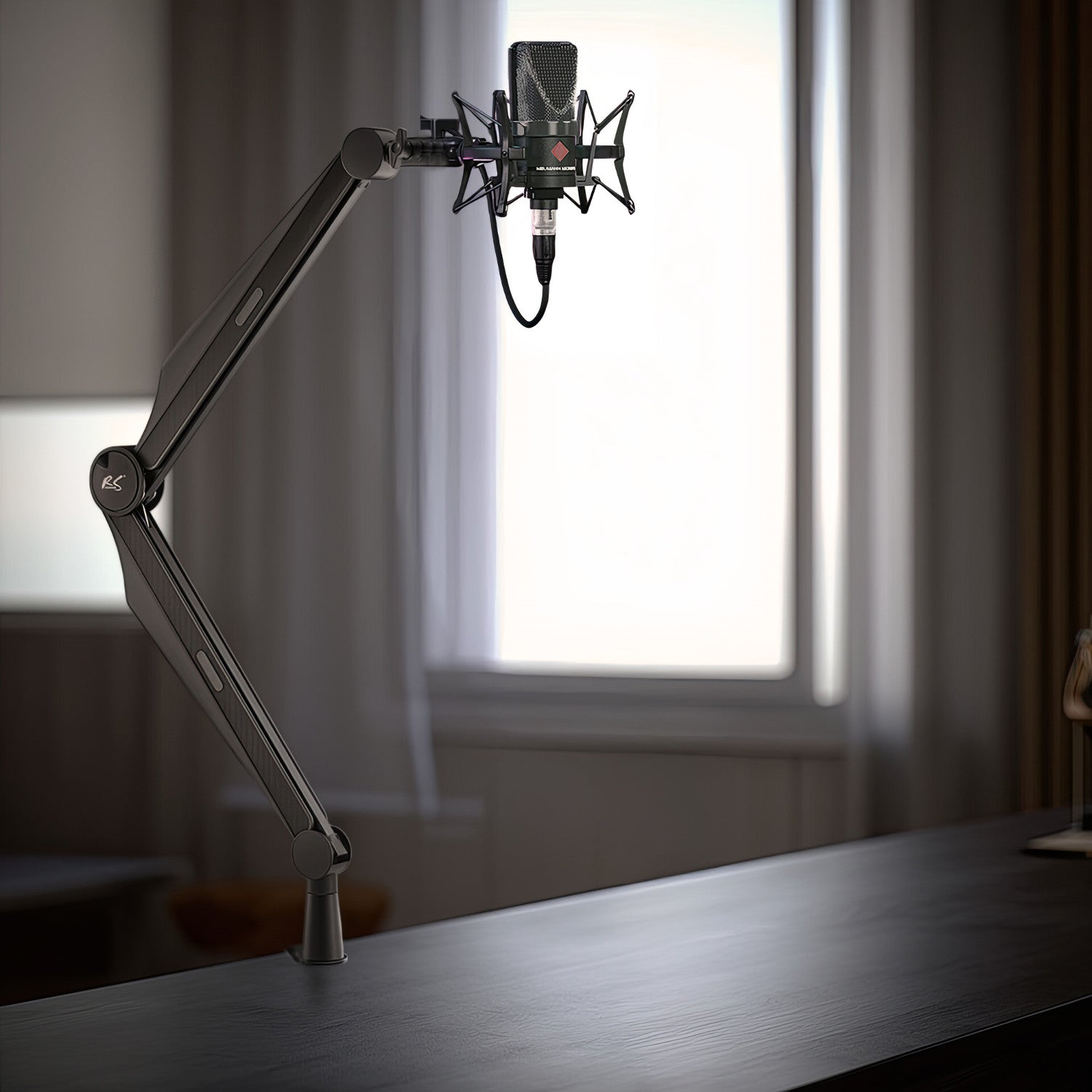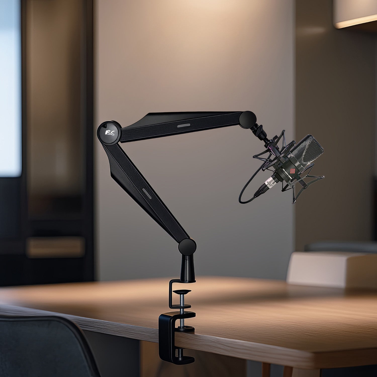 Statyw nadaje się zarówno do zastosowania w profesjonalnym studiu do nagrywania dźwięku lub audycji radiowych, ale również do użytku domowego, np. do streamingu.