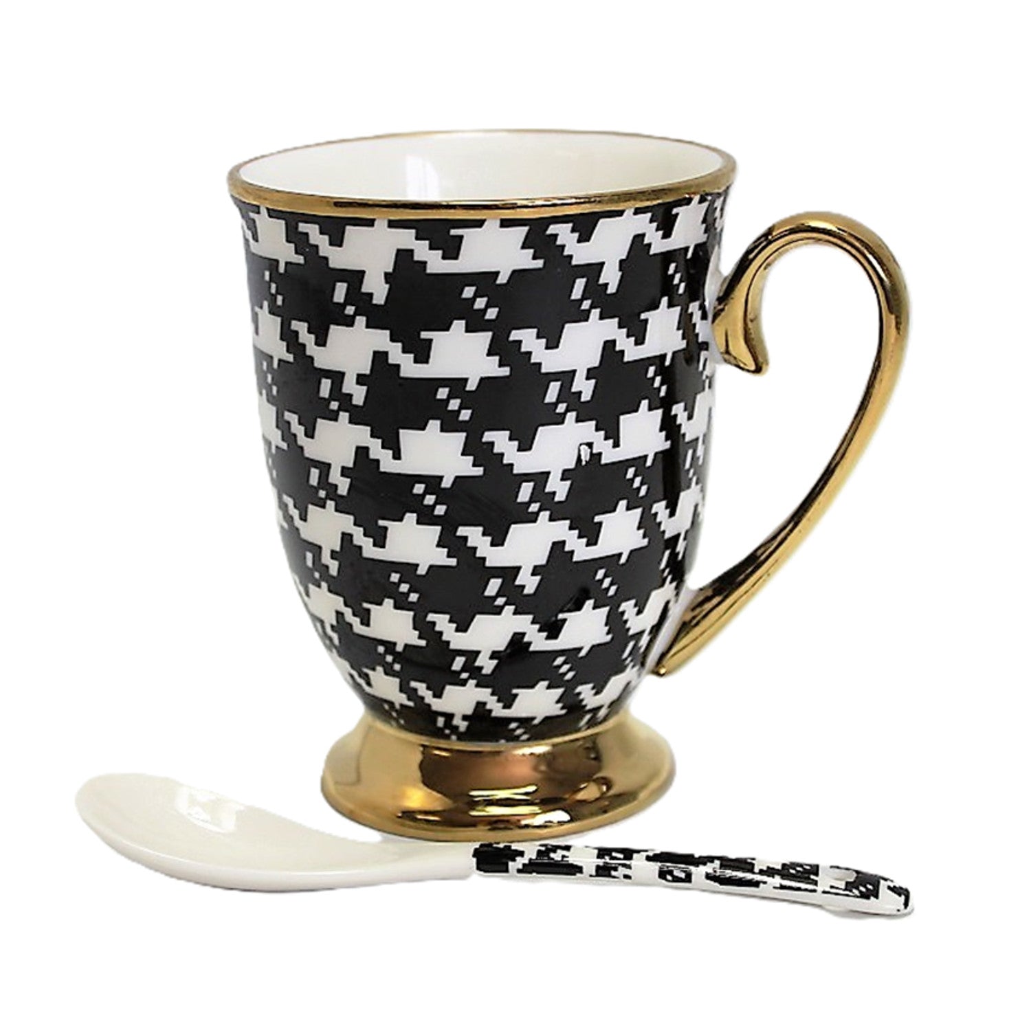 Kubek Pepitka Złoty Uchwyt Podstawa Łyżeczka Porcelana Ekskluzywny, Queen Isabel