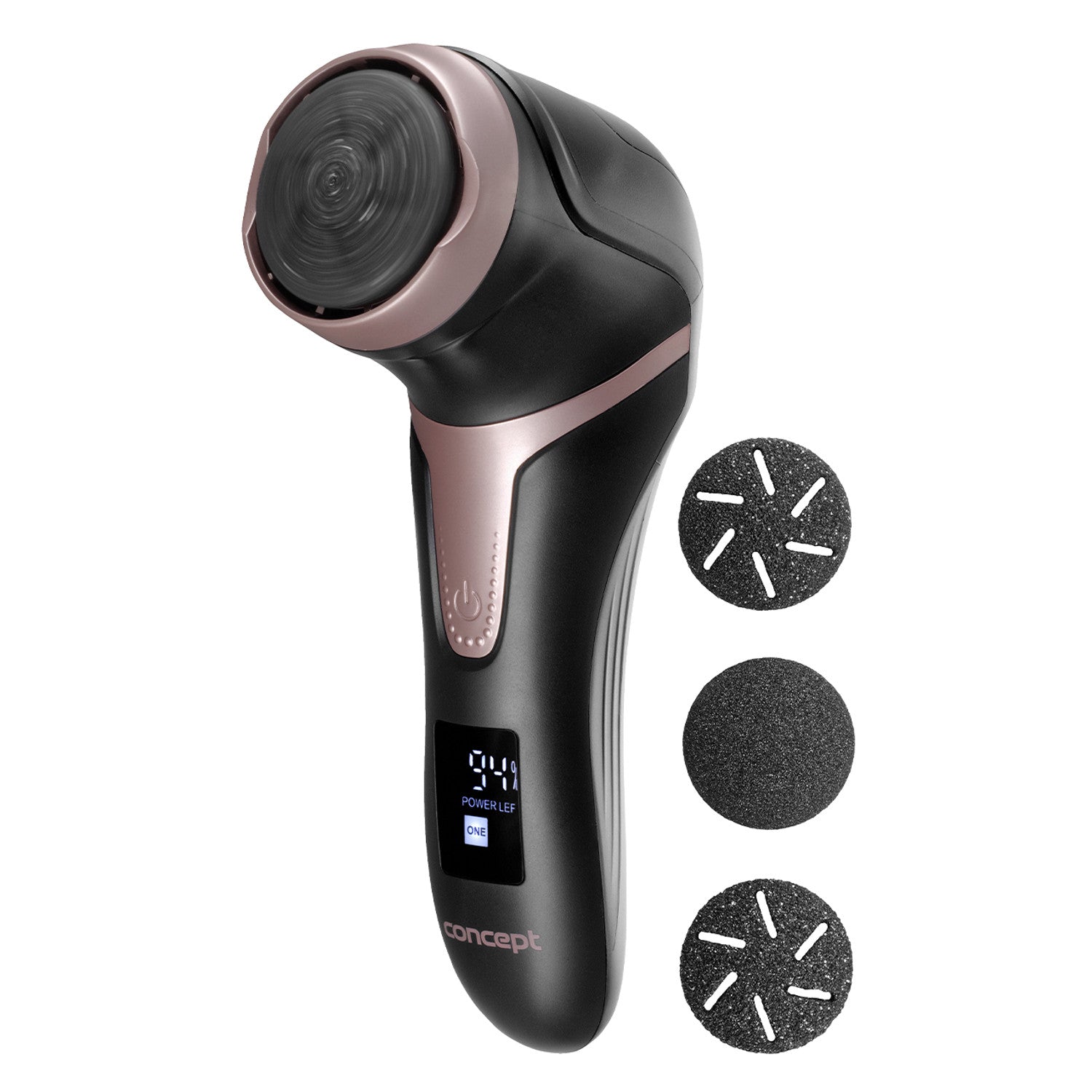 Elektryczny pilnik Concept, do pięt, 3 nadkładki, akumulator, czarny, PN3020