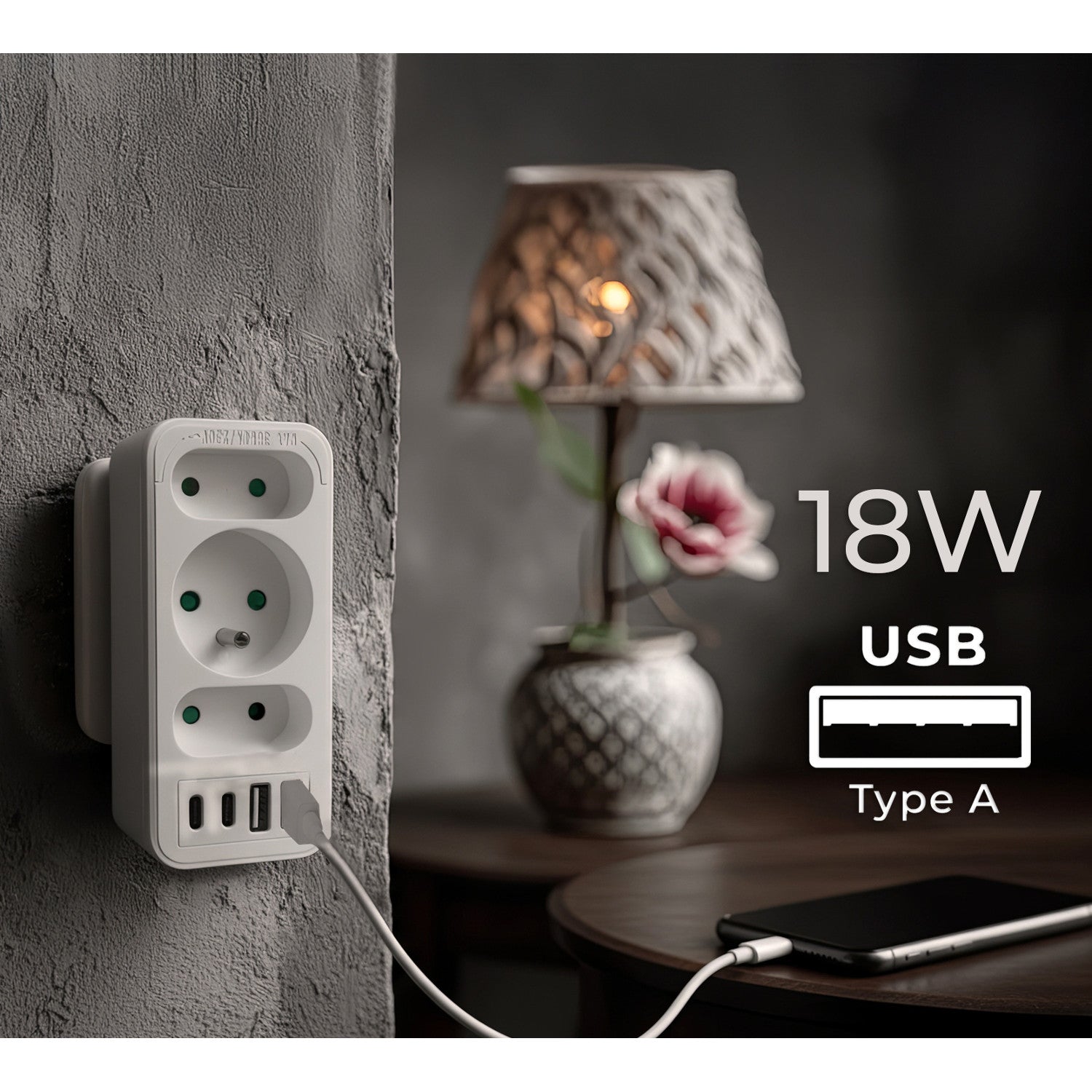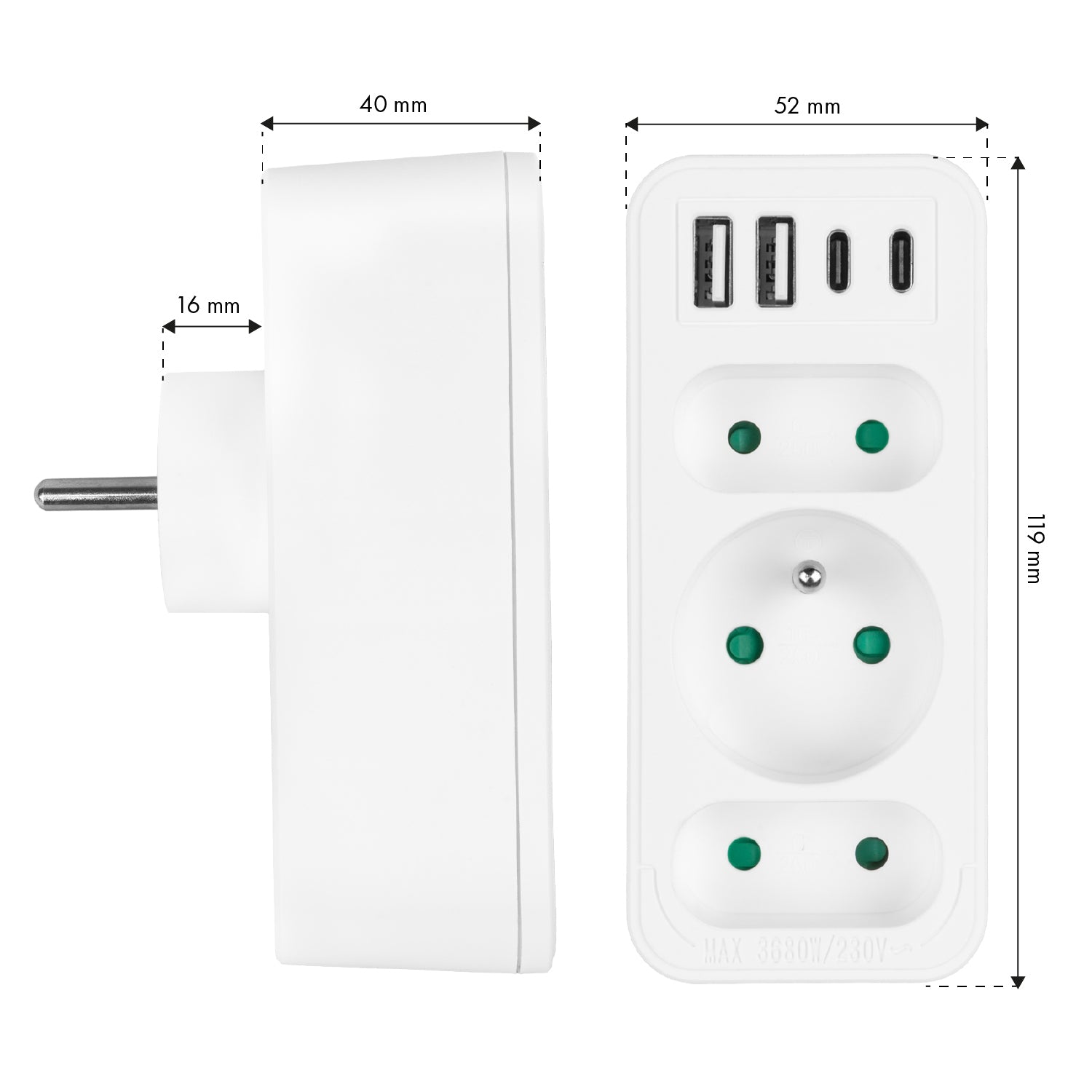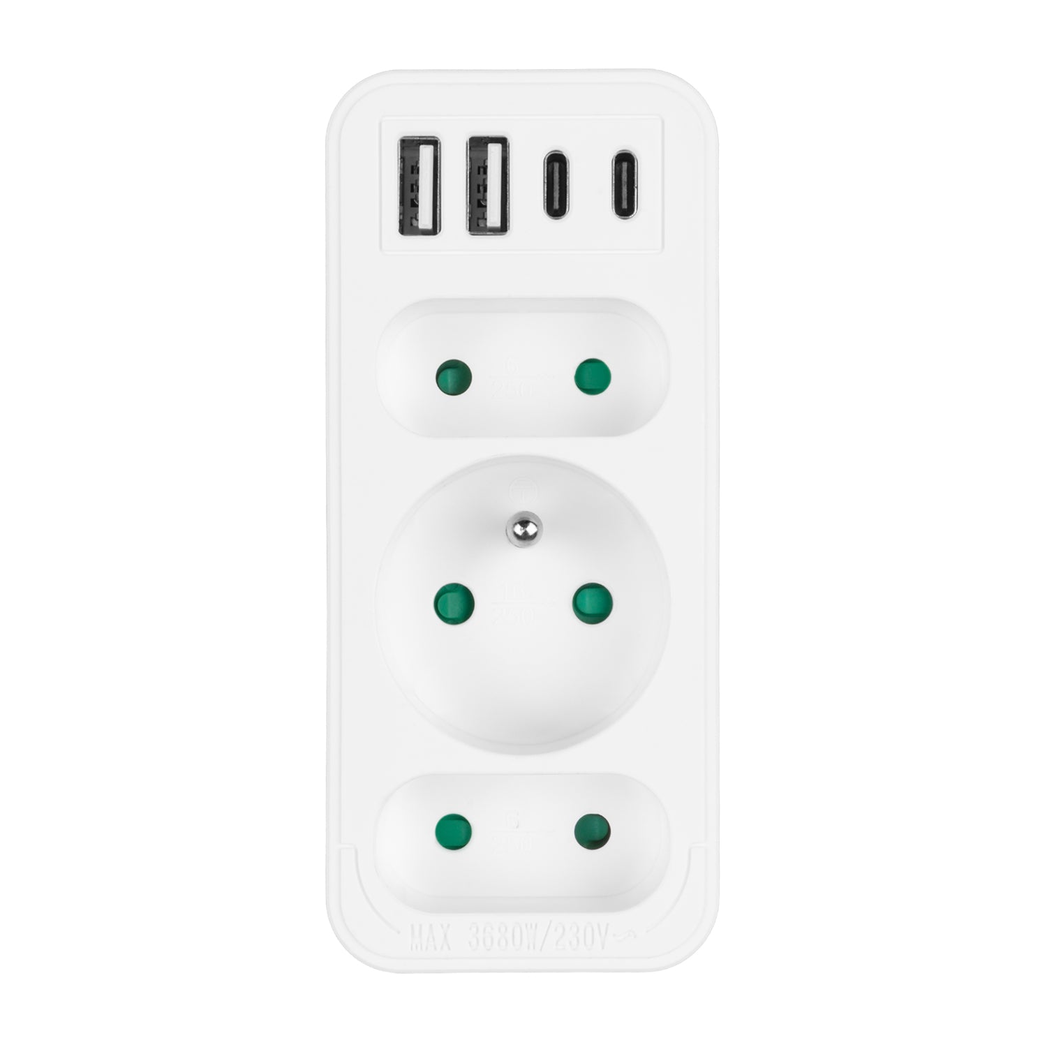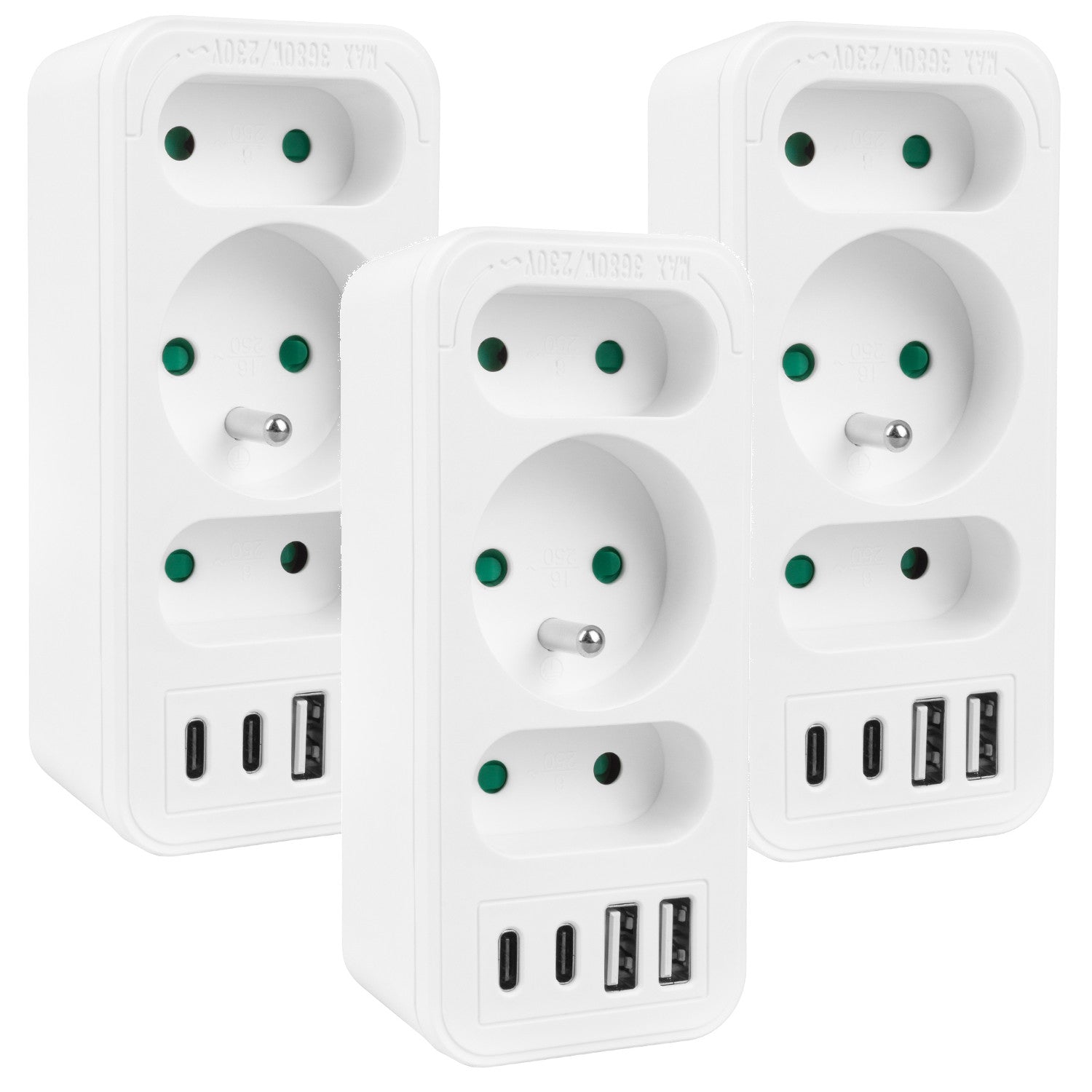 3x rozdzielacz 3 gniazda 2x USB-A 2x USB-C biały