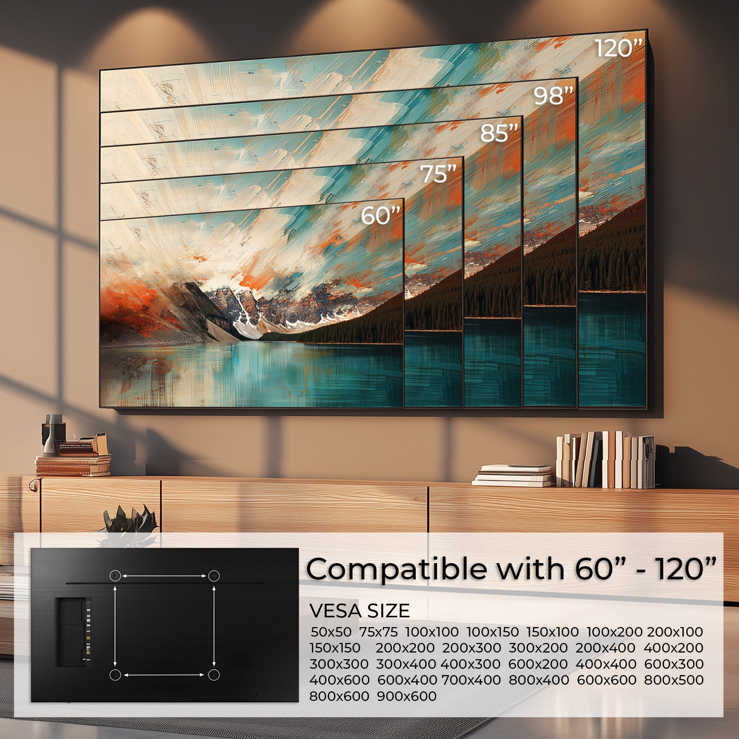 - Przeznaczony dla TV 60" do 120" (lub większych, jeśli ich waga nie przekracza 120 kg, a standard VESA jest zgodny z uchwytem)