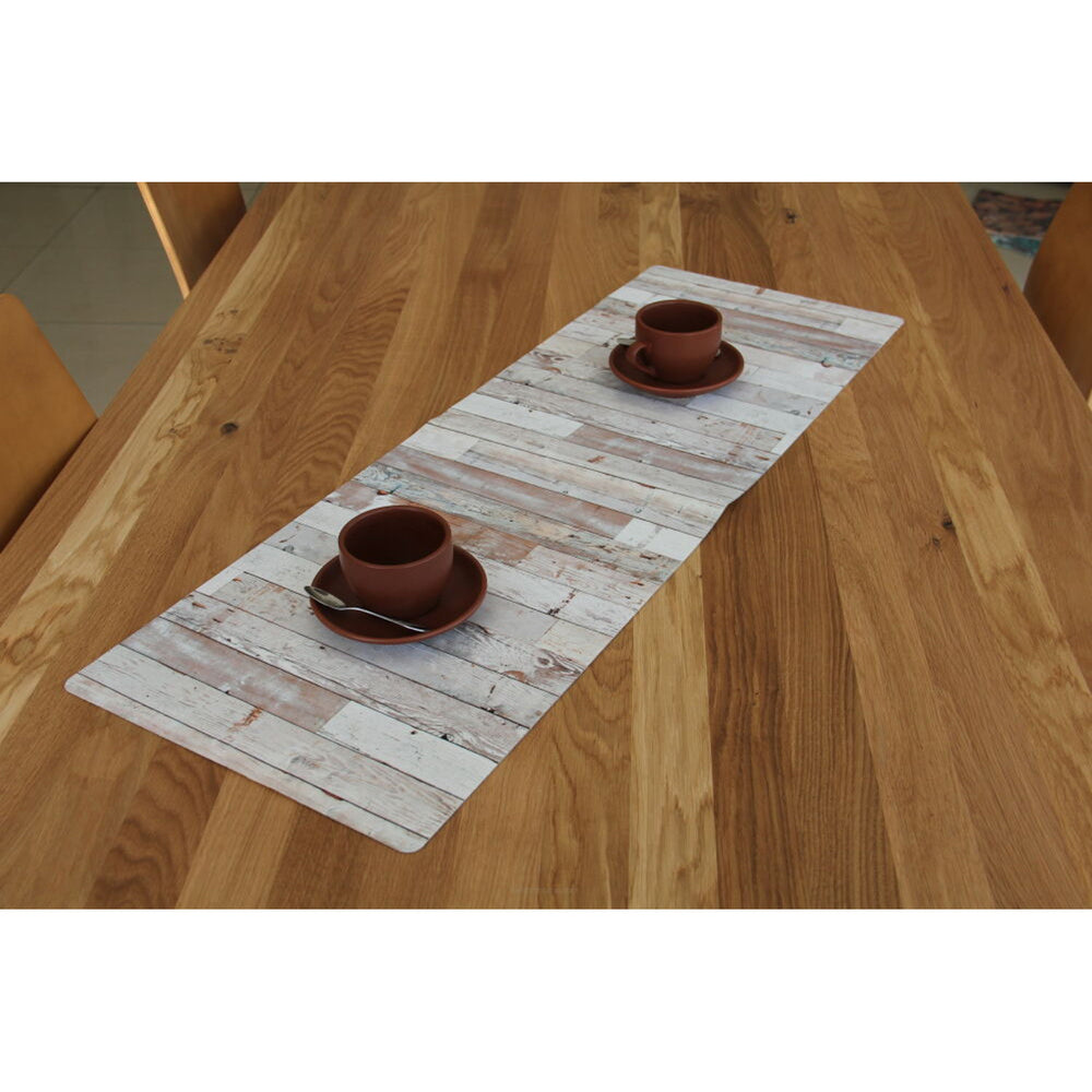 Bieżnik Bertoni, stołowy, ekologiczny filc, wymiary 95x33cm, wzór nadruku Drewno