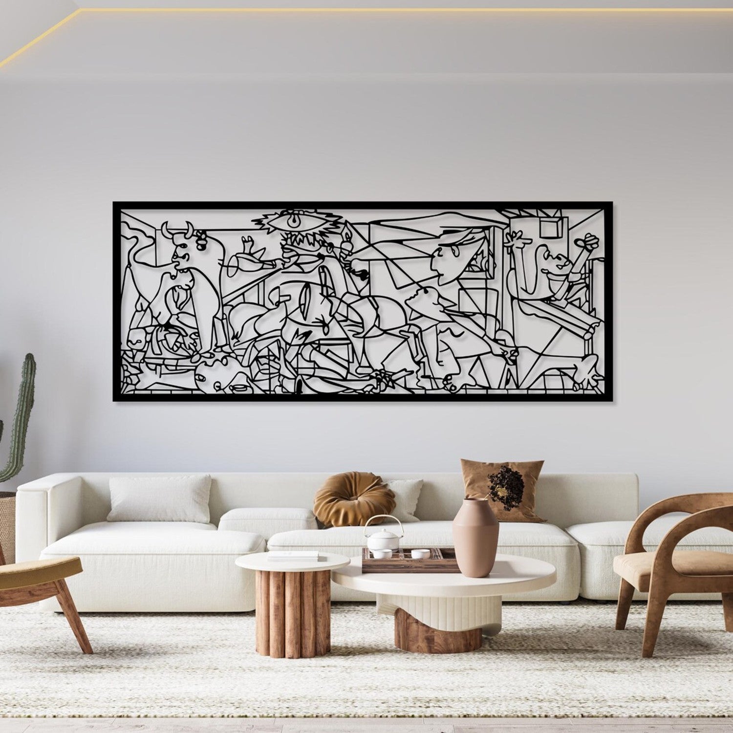 Ażurowy obraz, dekoracja ścienna 3D, Obraz 3D "Guernica Pablo Picasso" 150x60cm Czarny