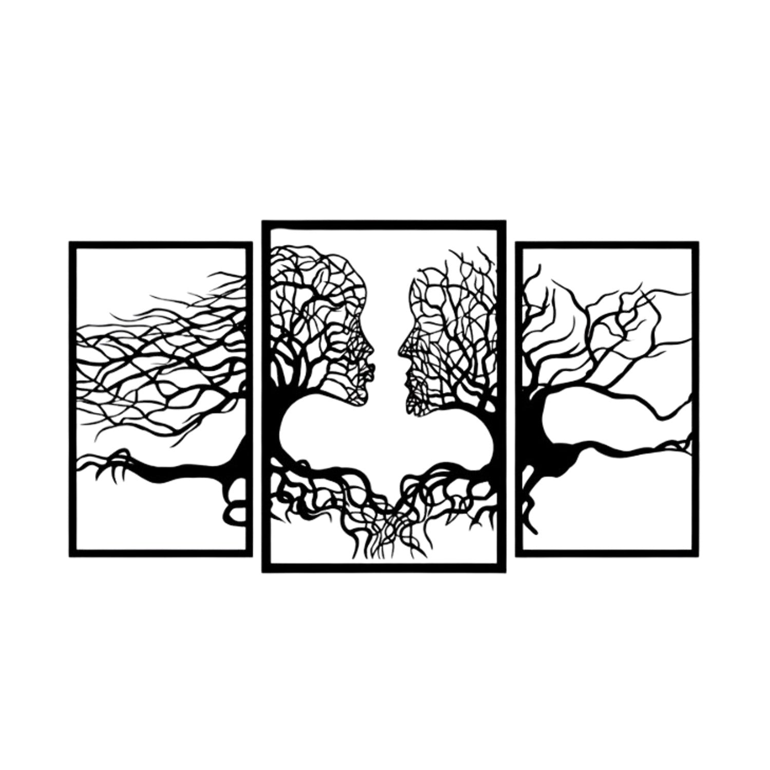 Ażurowy obraz Eyoka, dekoracja ścienna 3D, Obraz 3D "Twarze z drzew" 150x90cm Czarny