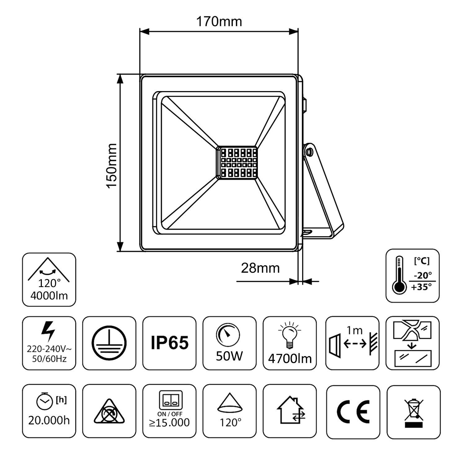 HALOGEN IP65 50W SLIM NAŚWIETLACZ LAMPA STOJAK