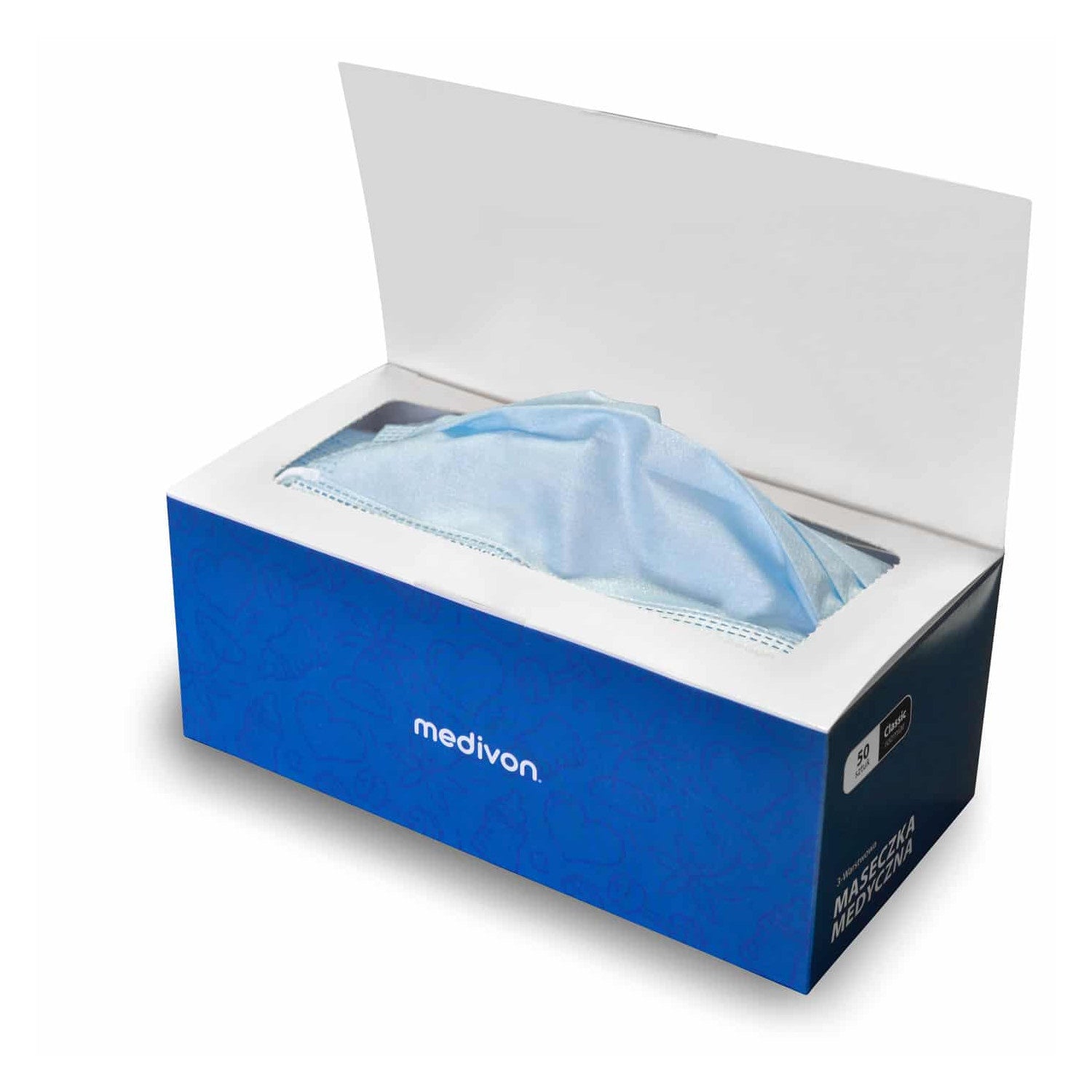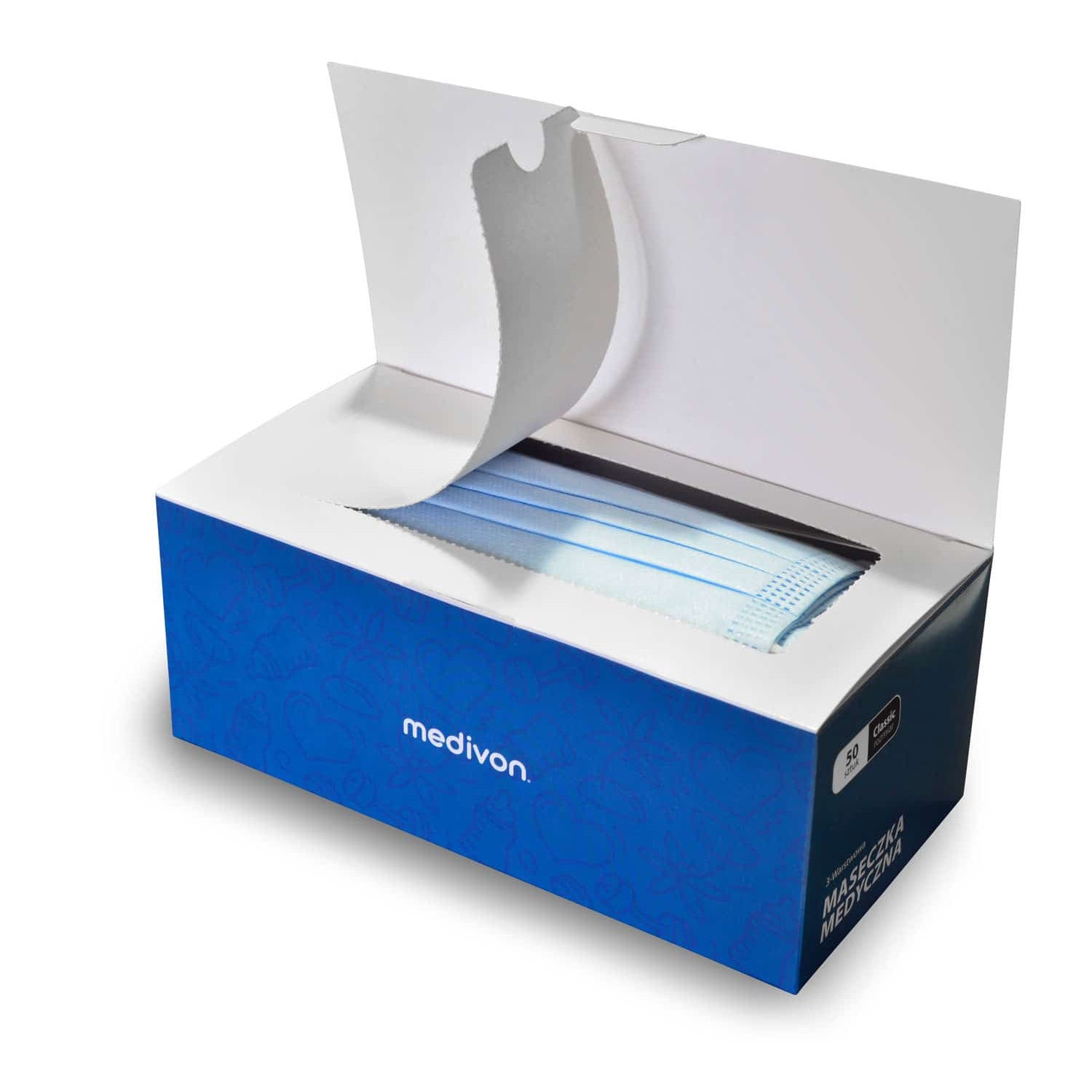Maseczka medyczna ochronna chirurgiczna antywirusowa Medivon MDV-4420 typ II, 3 warstwowa, 50 szt