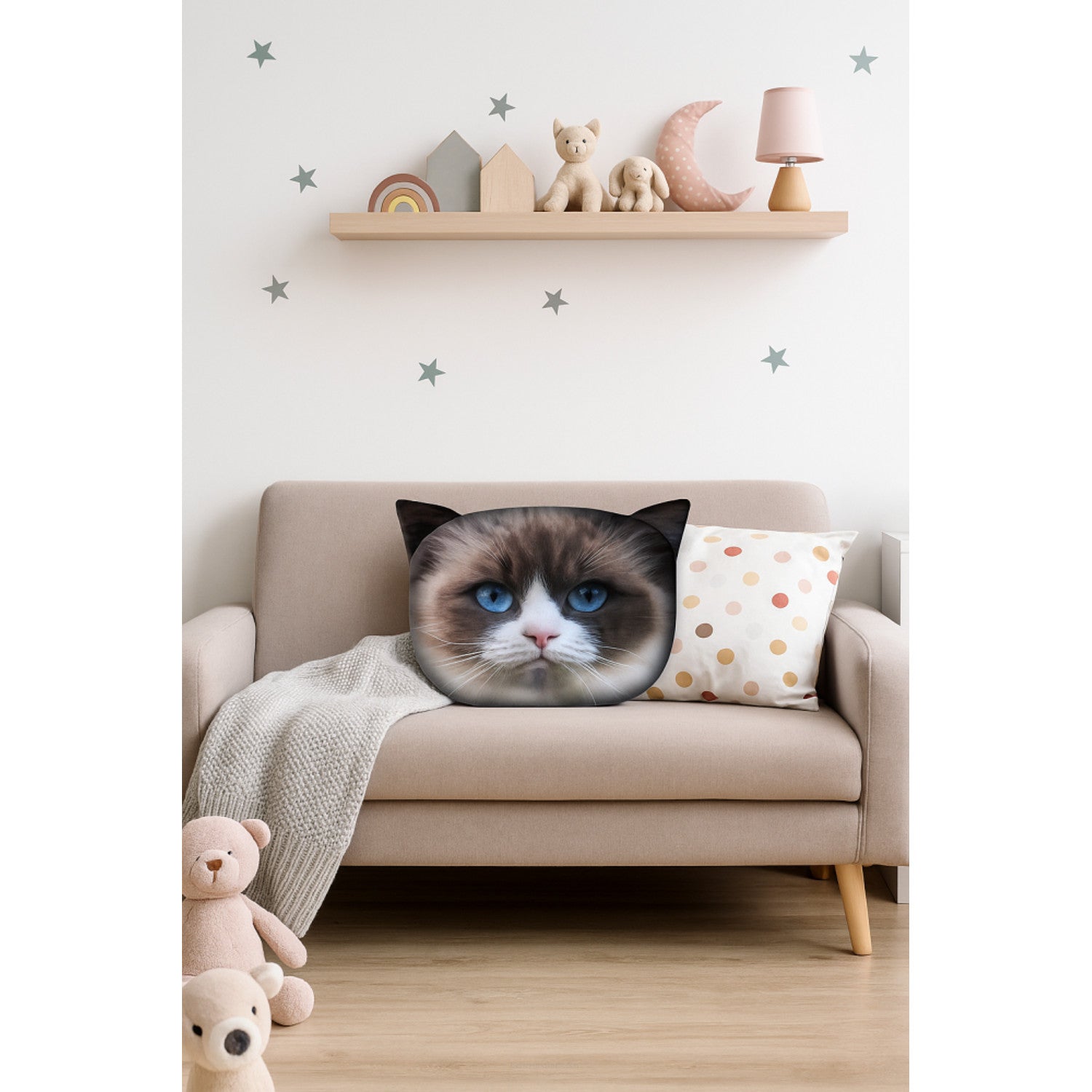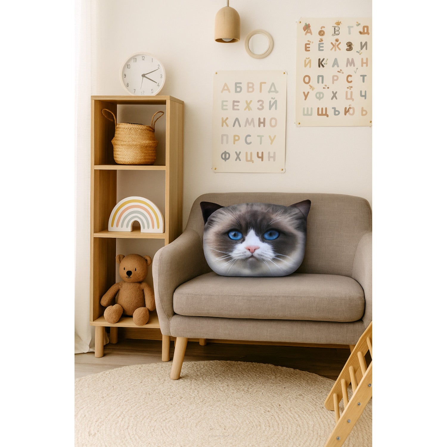 Poduszka dekoracyjna Bertoni Kot Daisy 30x45 cm, welur, nadruk kota, wkład antyalergiczny