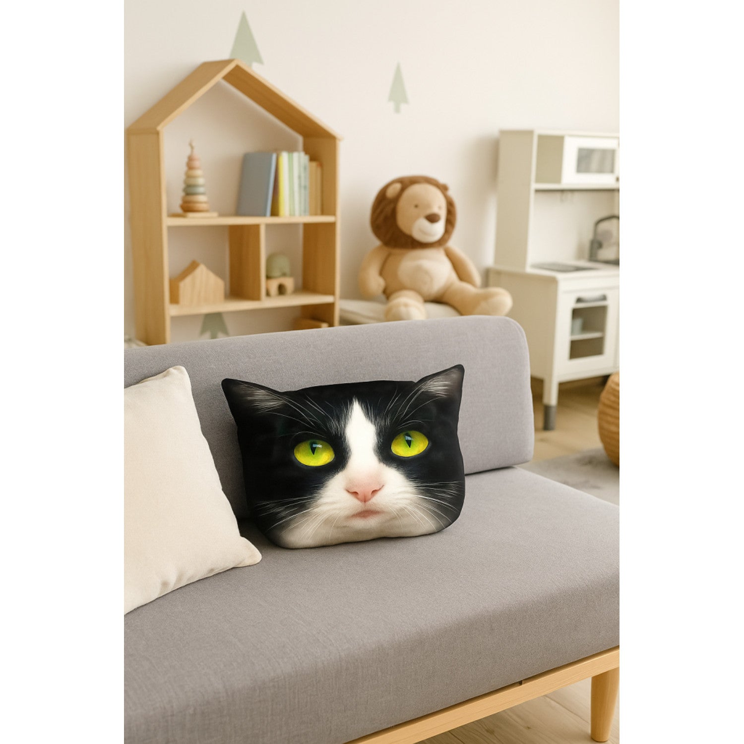 Poduszka dekoracyjna Bertoni Kot Panda 30x45 cm, welur, nadruk kota, wkład antyalergiczny