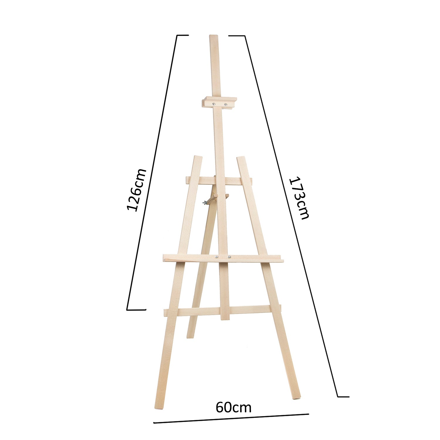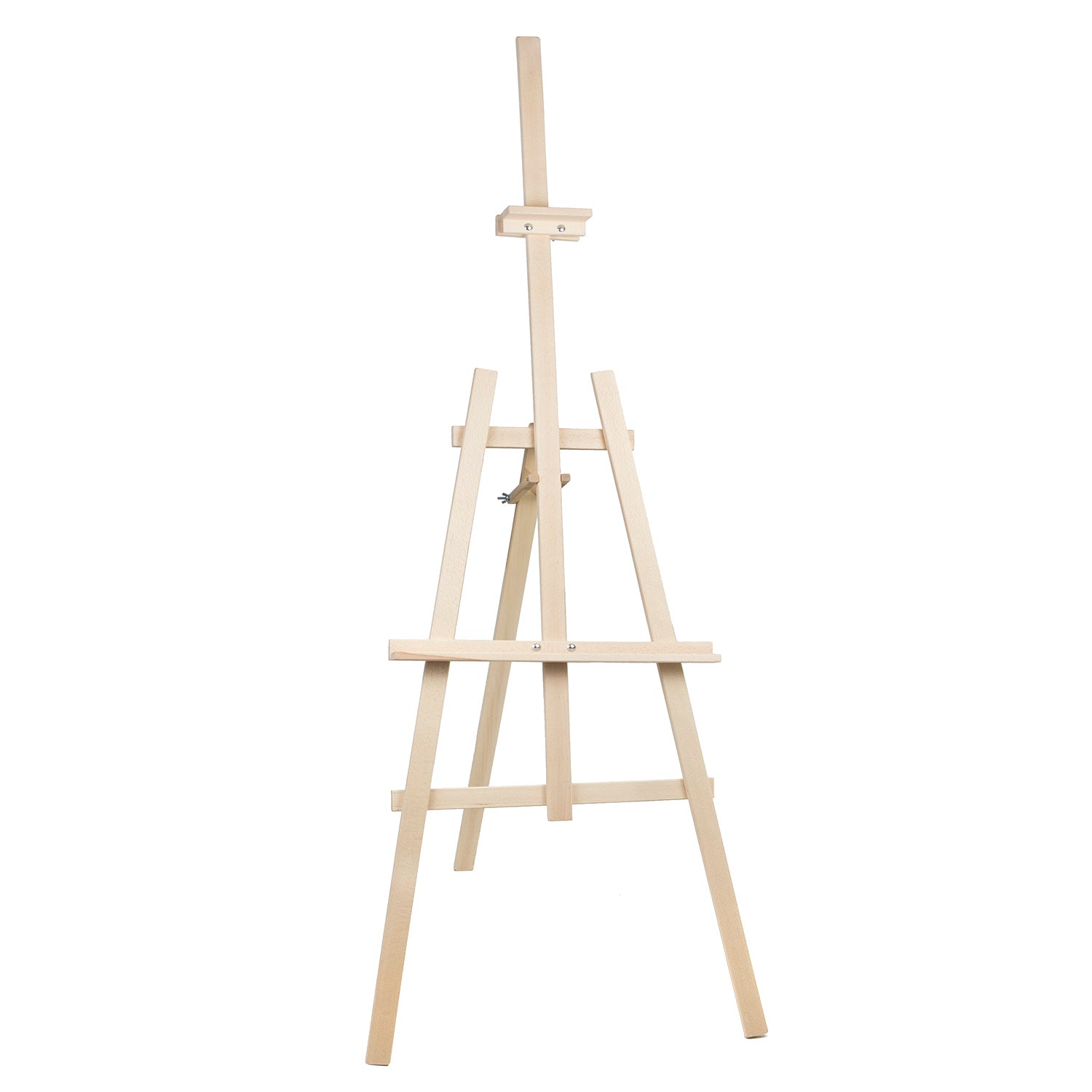 Drewniana sztaluga do samodzielnego montażu, bardzo starannie wykonana, z regulowanymi uchwytami. Śruby i elementy montażowe znajdują się w zestawie. Sztaluga została wykonana z drewna bukowego, jest solidna, stabilna i wytrzymała, a mimo tego lekka. Dzięki indywidualnym możliwościom regulacji wysokości i nachylenia sztaluga zapewnia duży komfort malowania dla artysty hobbystycznego i Twojej pracowni.