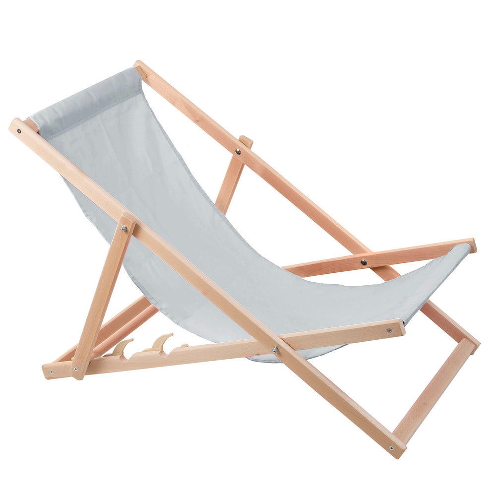 Komfortowy leżak z drewna w kolorze jasny popiel idealny na plażę, balkon, taras
