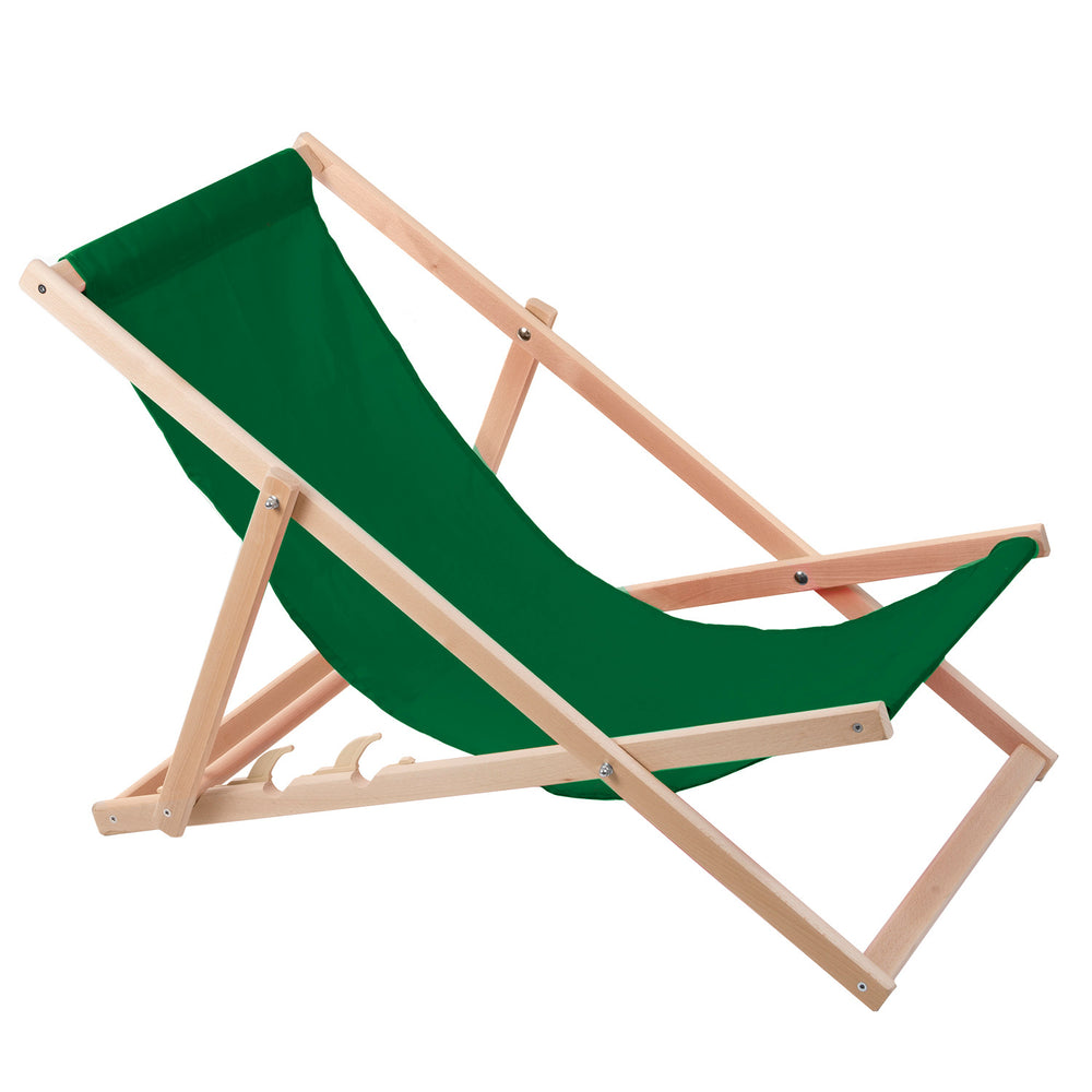 Komfortowy leżak z drewna w kolorze zielonym idealny na plażę, balkon, taras
