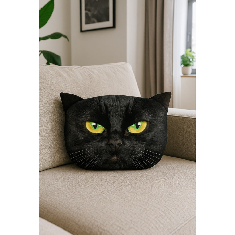 Poduszka dekoracyjna Bertoni Kot Nero 30x45 cm, welur, nadruk kota, wkład antyalergiczny