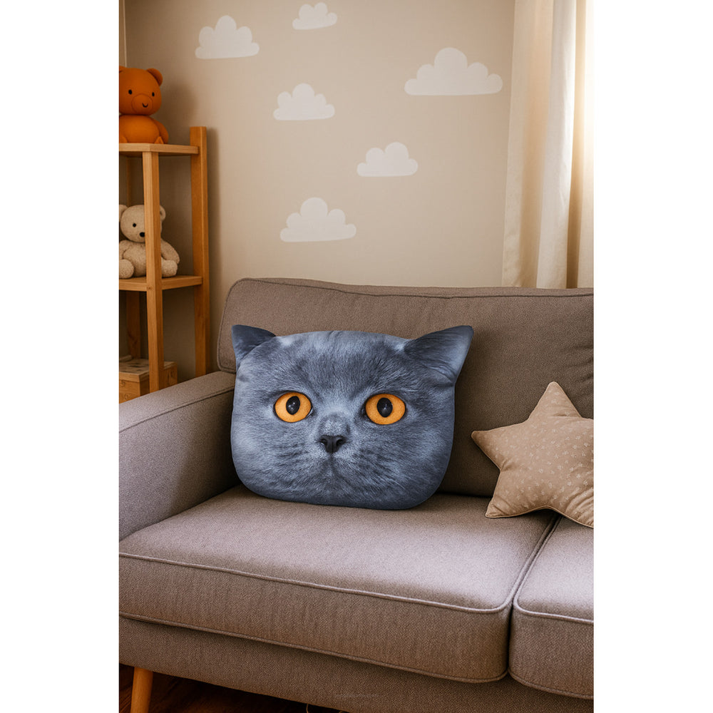 Poduszka dekoracyjna Bertoni Kot Borys 30x45 cm, welur, nadruk kota, wkład antyalergiczny