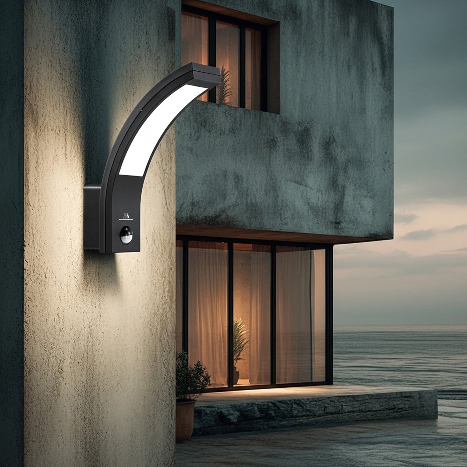 Lampa LED z czujnikiem ruchu Maclean, czujnik ruchu PIR, kolor czarny, 10W, IP54, 750lm, barwa neutralna biała (4000K) MCE244 B