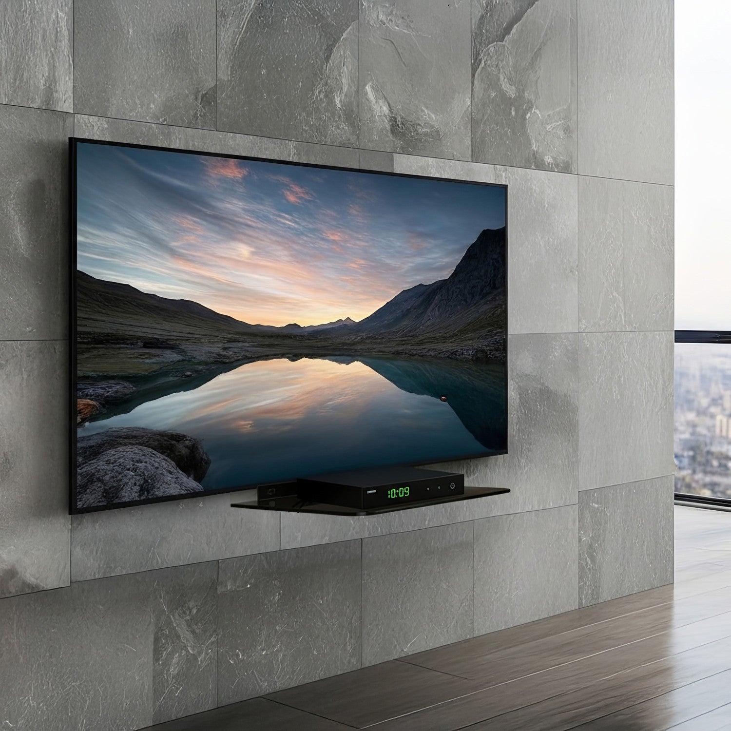 Półka szklana dedykowana urządzeniom RTV c dekoderom telewizyjnym, odtwarzaczom multimedialnym, DVD, Blu-ray, konsolom do gier i innym.
