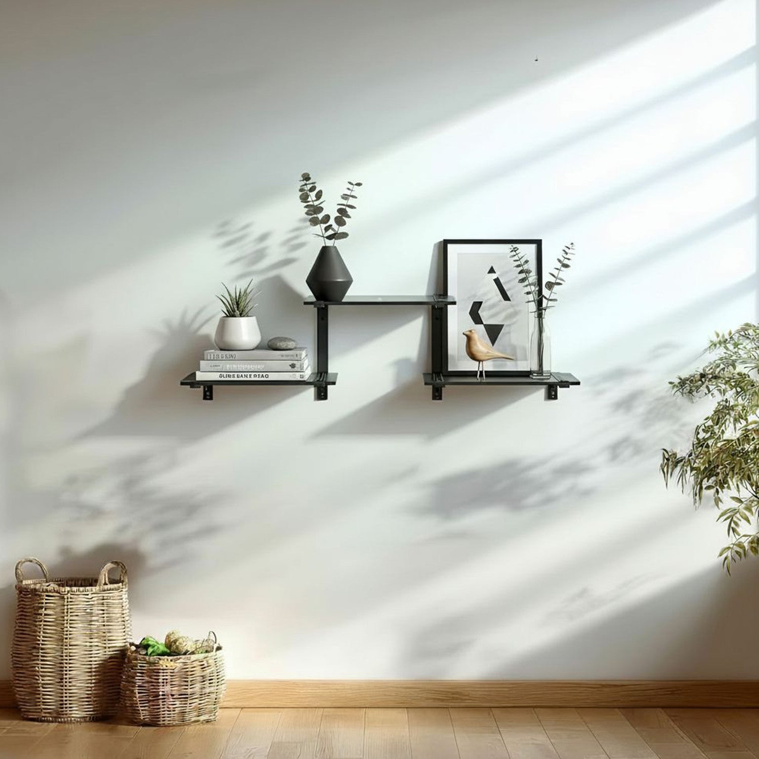Półka ścienna RTV modułowa potrójna 30 kg czarna