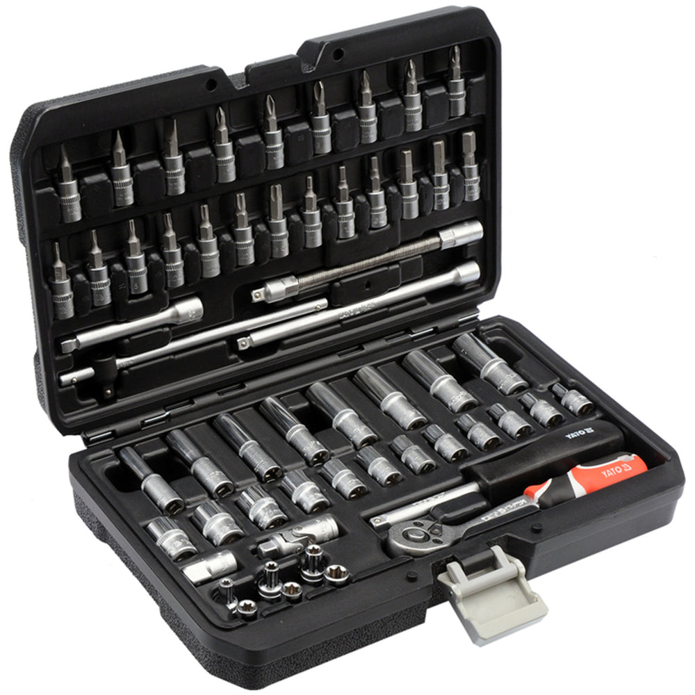Profesjonalny zestaw narzędziowy Yato, klucze nasadowe i nasadki, ze stali chromowo-wanadowej, 56 elementów, Nasadki z systemem AS-Drive, w walizce, YT-14501