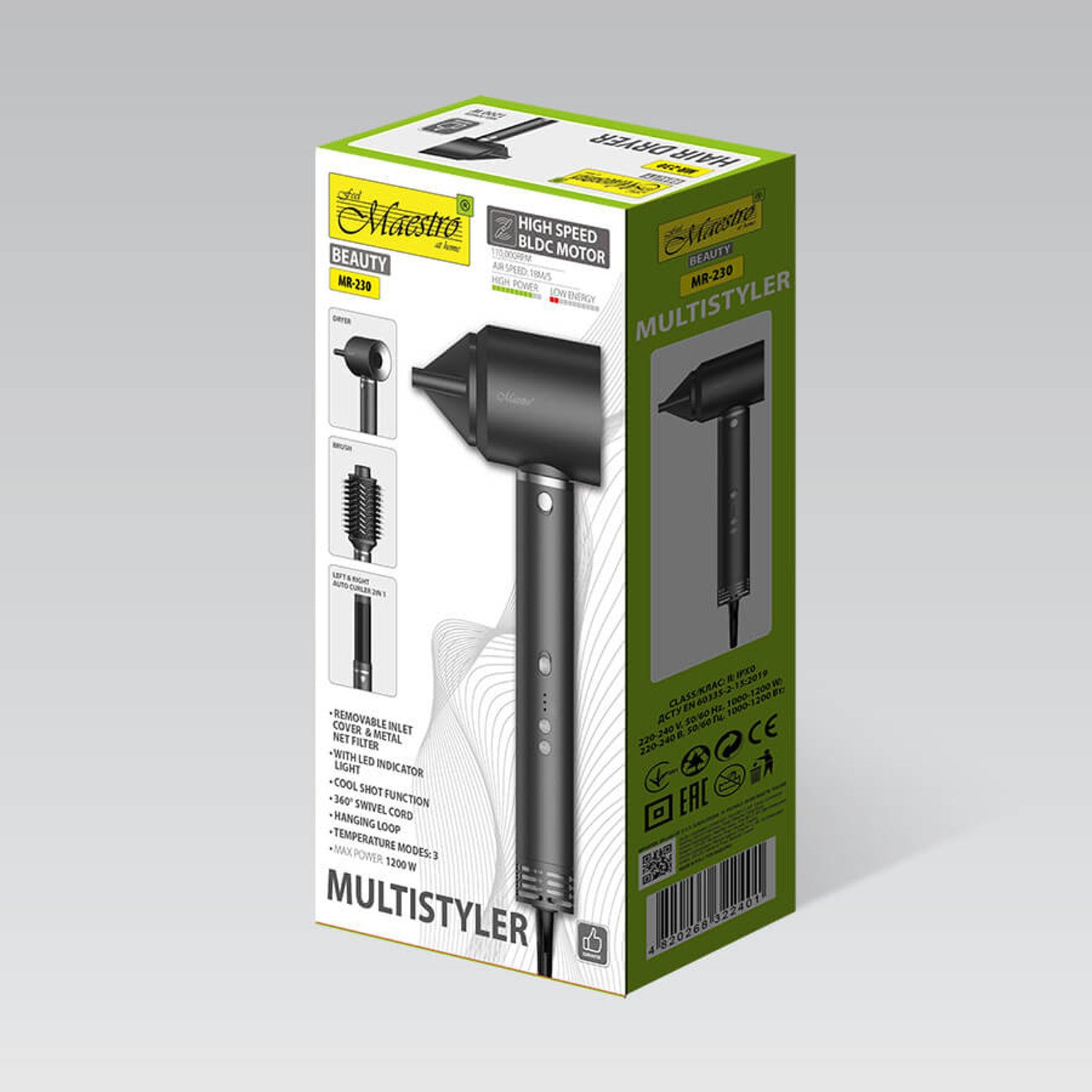 Multistyler / zestaw do pielęgnacji włosów Maestro, suszarka do włosów, suszarko-szczotka, lokówka automatyczna, moc 1200W, 2 ustawienia temperatury + zimny nadmuch, MR-230