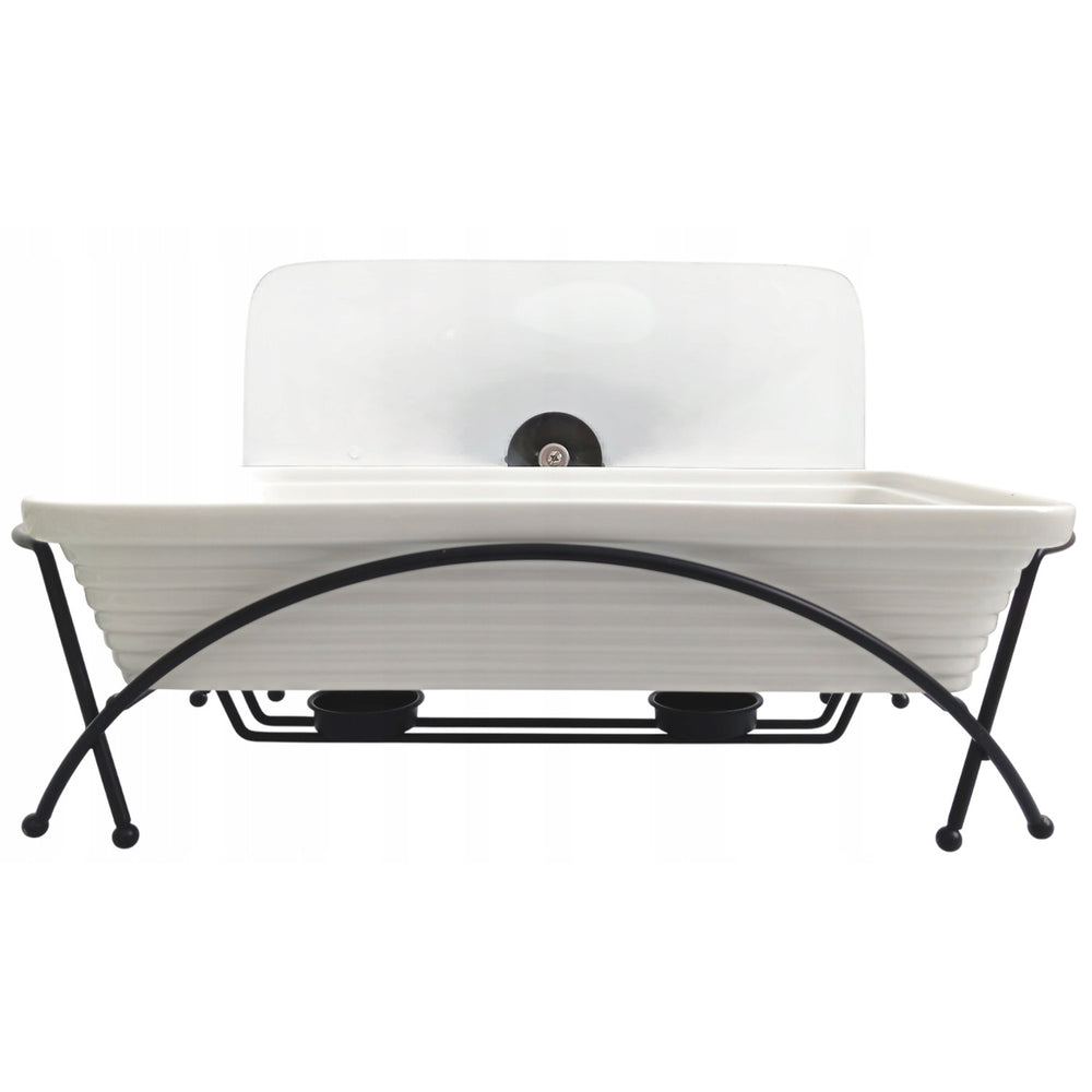 Ceramiczny podgrzewacz do potraw Maestro, prostokątny, kolor biały, pojemność 2,4L, można używać w piekarniku, w zestawie stelaż i pokrywka z uchwytem, MR-11562-73