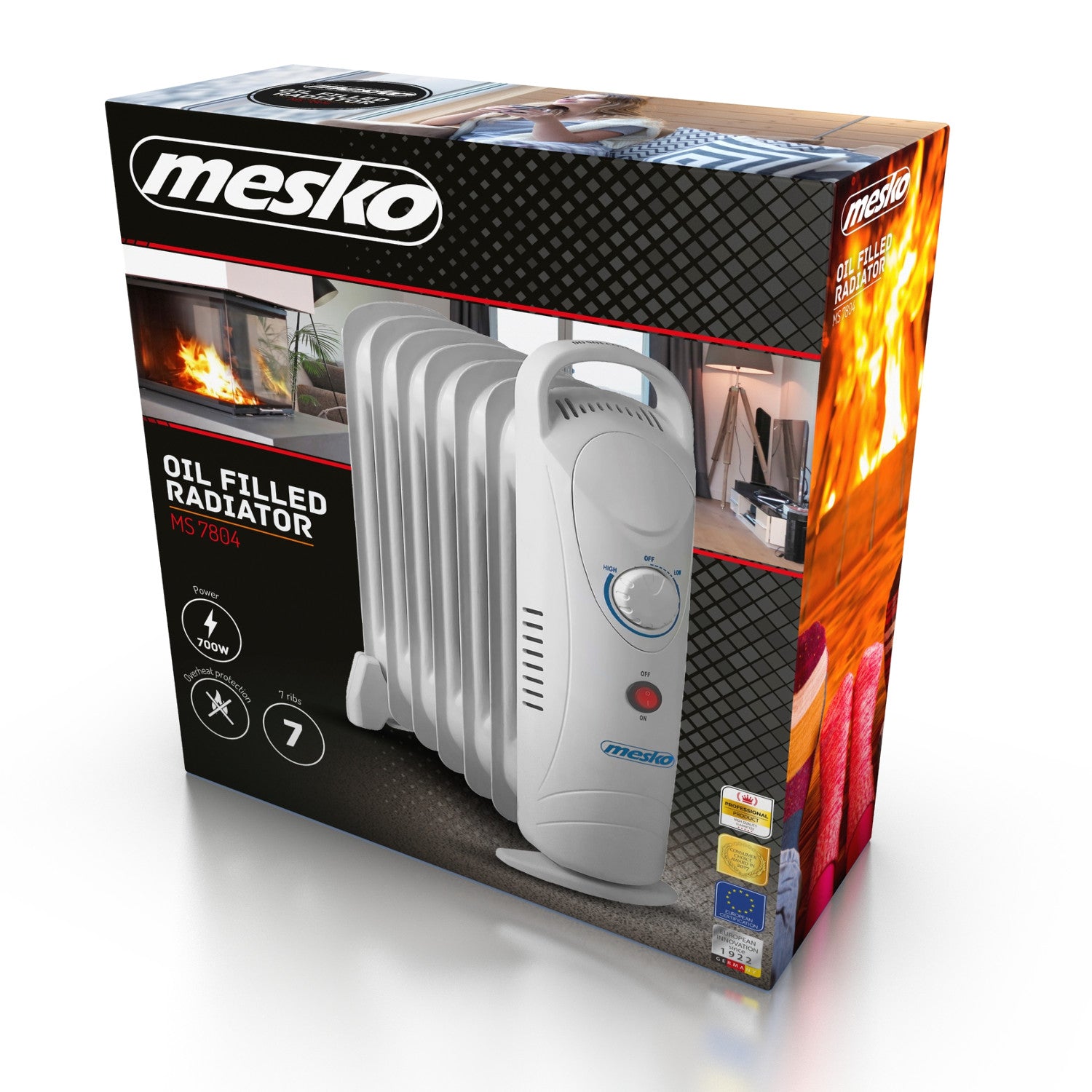 Grzejnik olejowy Mesko, 7 żeberek, 800W, regulacja temperatury, szary, MS 7804