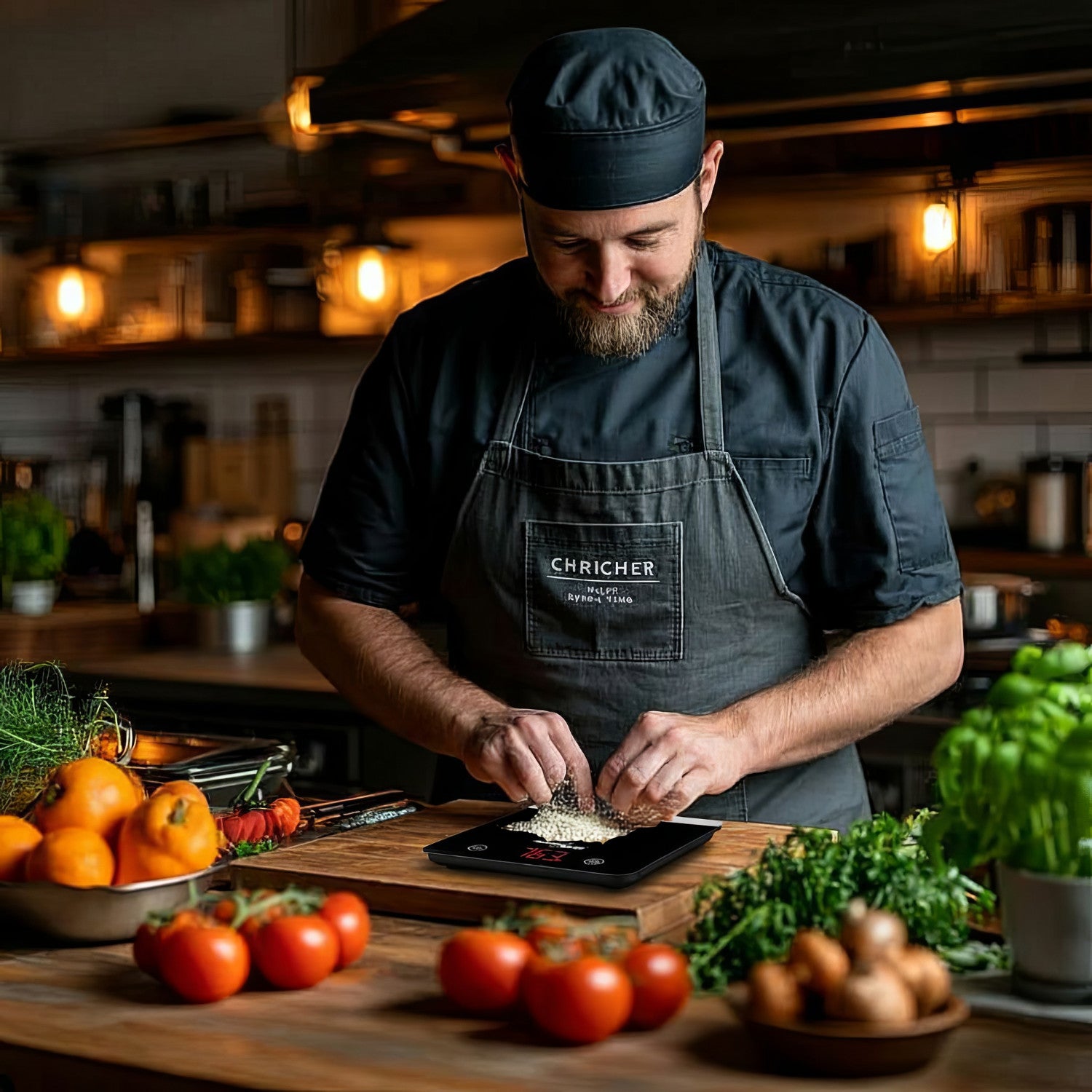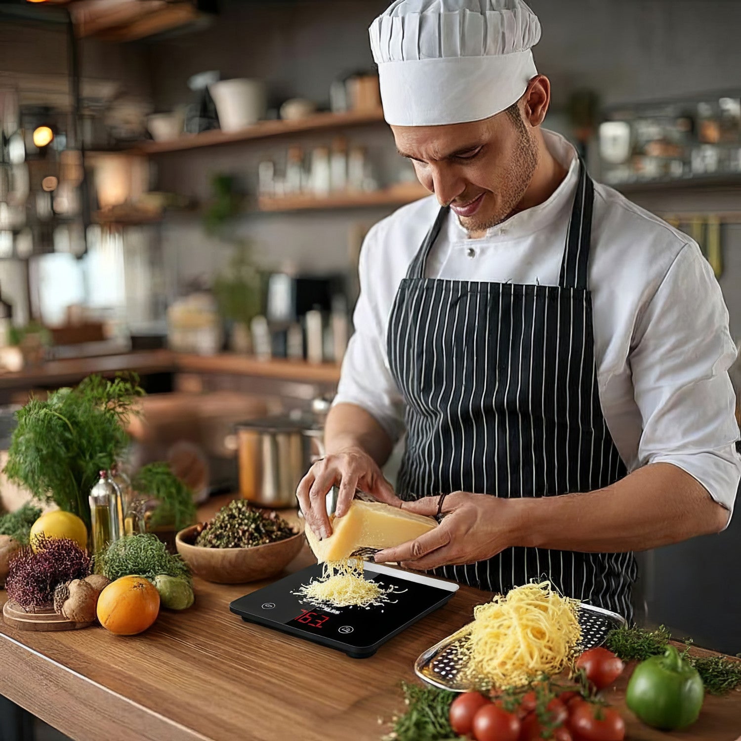Wysokiej jakości nowoczesna waga kuchenna o kompaktowej konstrukcji. Niezwykle pomocna przy przygotowywaniu dań wymagających ściśle określonych proporcji produktów.