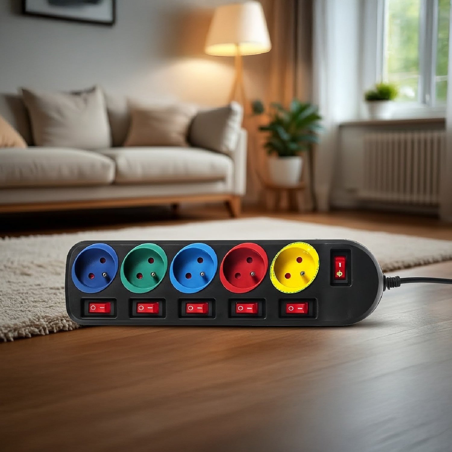 Listwa zasilająca przedłużacz 5 gniazd z włącznikami Maclean Energy MCE204M 250VAC/10A 1,5m Multi kolor