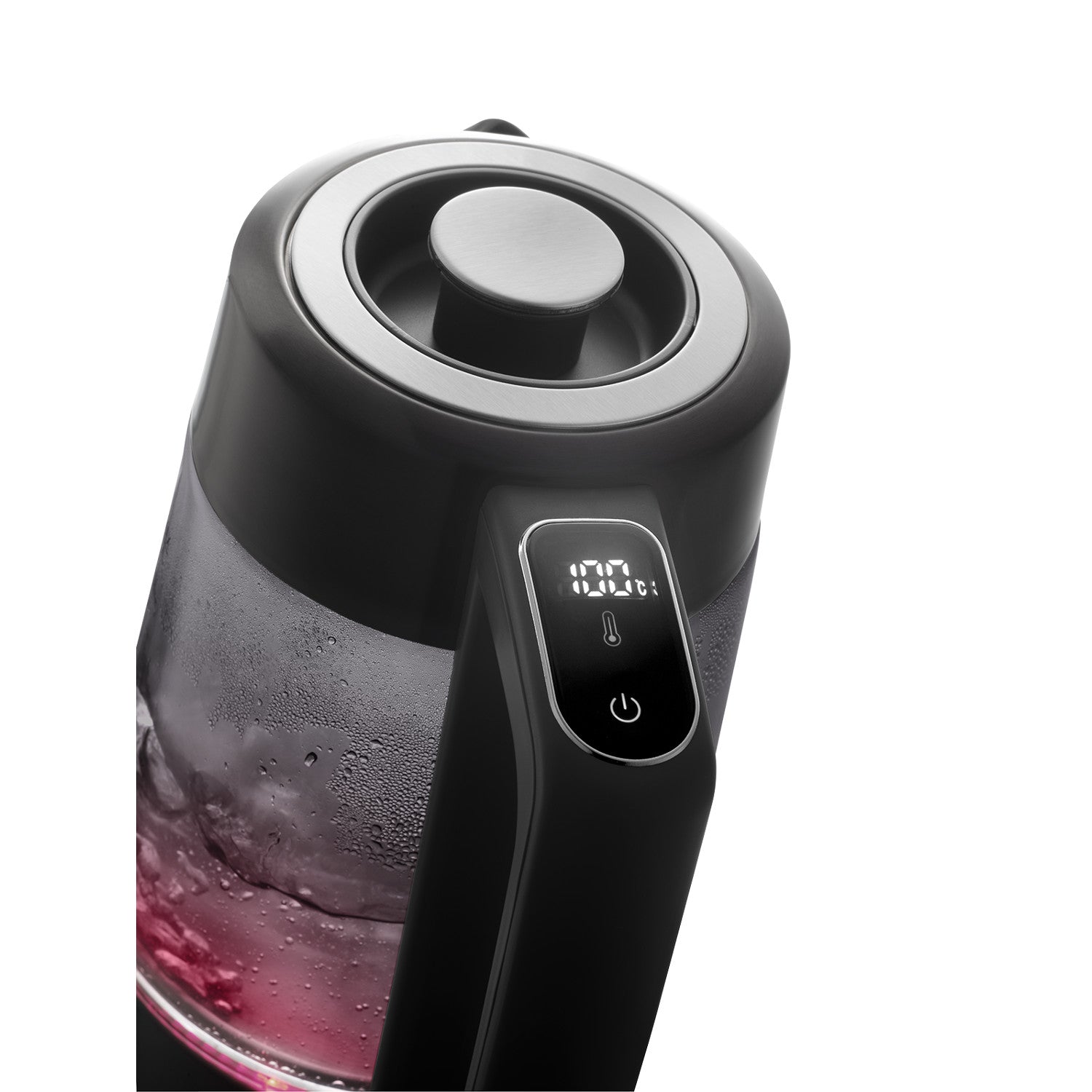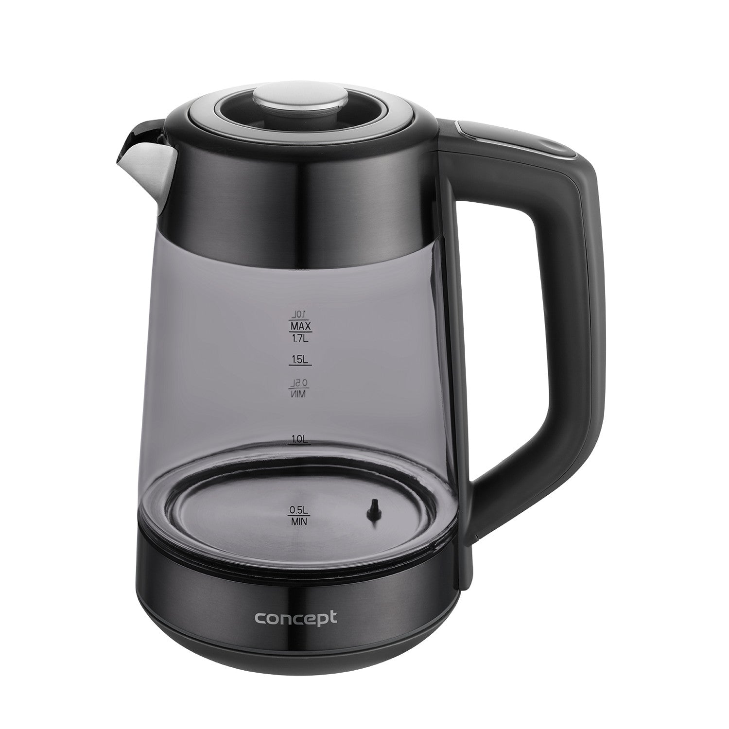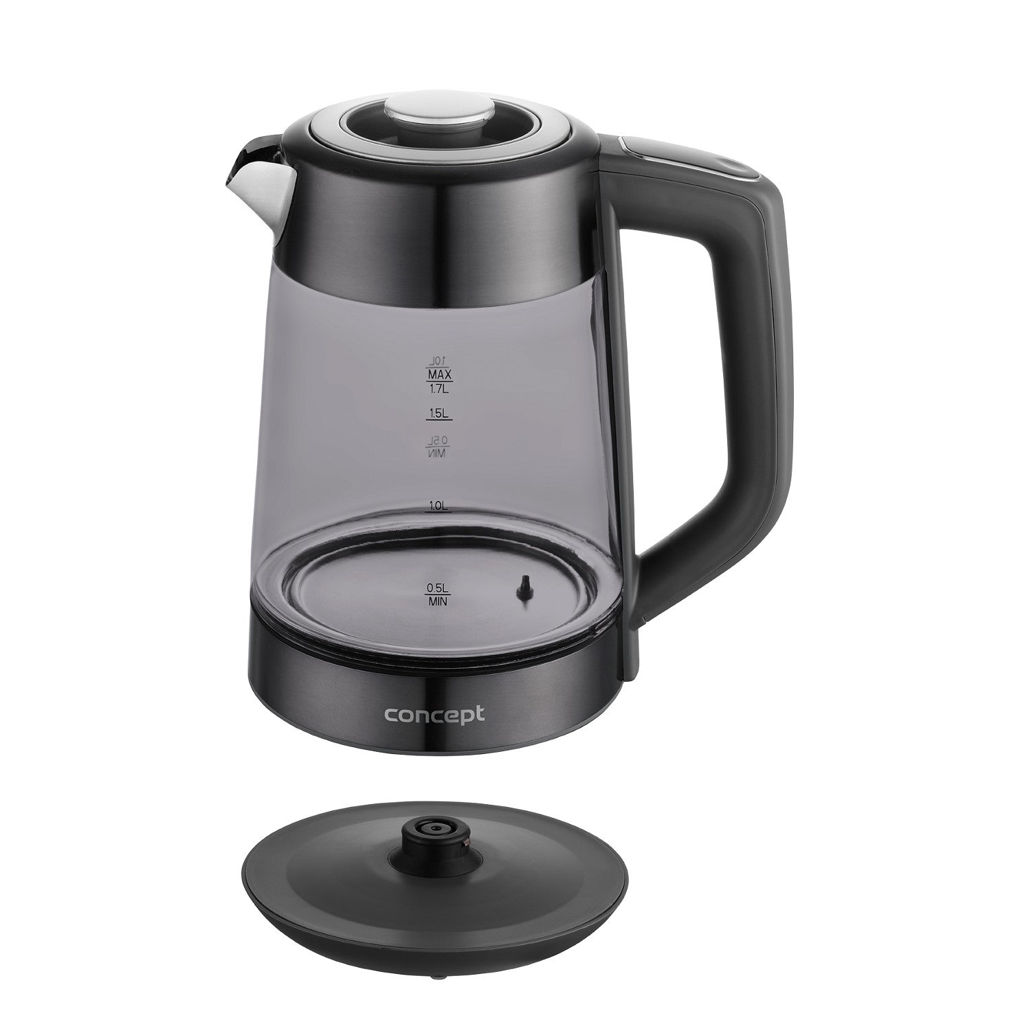 Czajnik elektryczny szklany Concept, pojemność 1,7L, moc 1850-2200 W, kolor czarny, złącze Strix, regulacja temperatury, sterowanie cyfrowe, RK4195