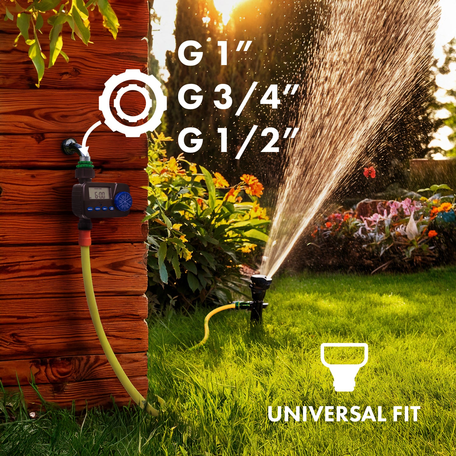 Sterownik GB390 oferuje pełną elastyczność w zarządzaniu podlewaniem, umożliwiając użytkownikowi dostosowanie harmonogramu pracy do specyficznych wymagań roślin oraz warunków pogodowych: