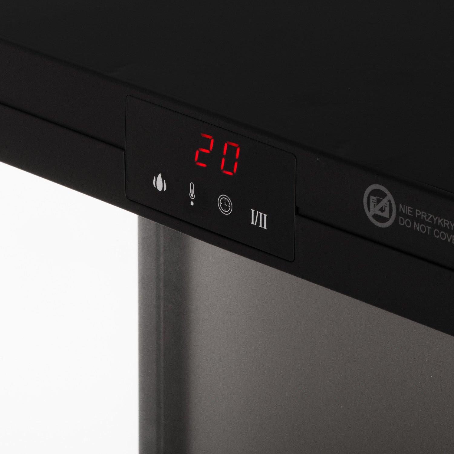Dzięki dwóm poziomom mocy grzewczej (1000W i 2000W) oraz wbudowanemu termostatowi z regulacją temperatury 15- 38°C, urządzenie automatycznie dostosowuje moc do ustawionych parametrów, zapewniając komfort i oszczędność energii. Dotykowy wyświetlacz LED oraz pilot zdalnego sterowania gwarantują maksymalną wygodę obsługi.