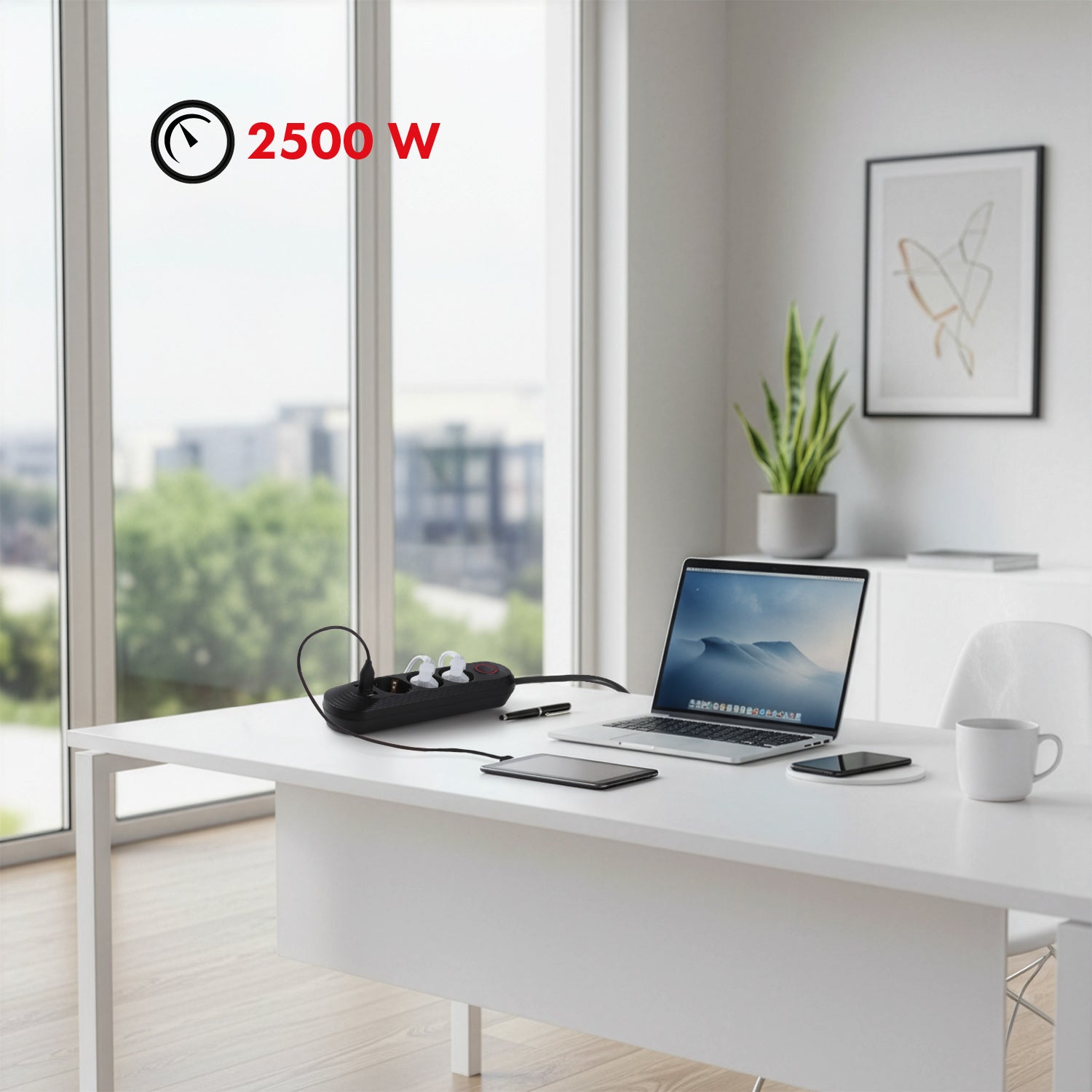 Listwa zasilająca z 3 gniazdami sieciowymi i 3 portami USB to idealne rozwiązanie dla osób, które potrzebują kompaktowego, a jednocześnie funkcjonalnego sposobu na zasilanie kilku urządzeń jednocześnie. Dzięki maksymalnej mocy 2500W i solidnej konstrukcji doskonale sprawdzi się przy biurku, w sypialni lub w pokoju dziennym. To niezawodny sposób na uporządkowanie przewodów i wygodne ładowanie sprzętu mobilnego bez dodatkowych adapterów.