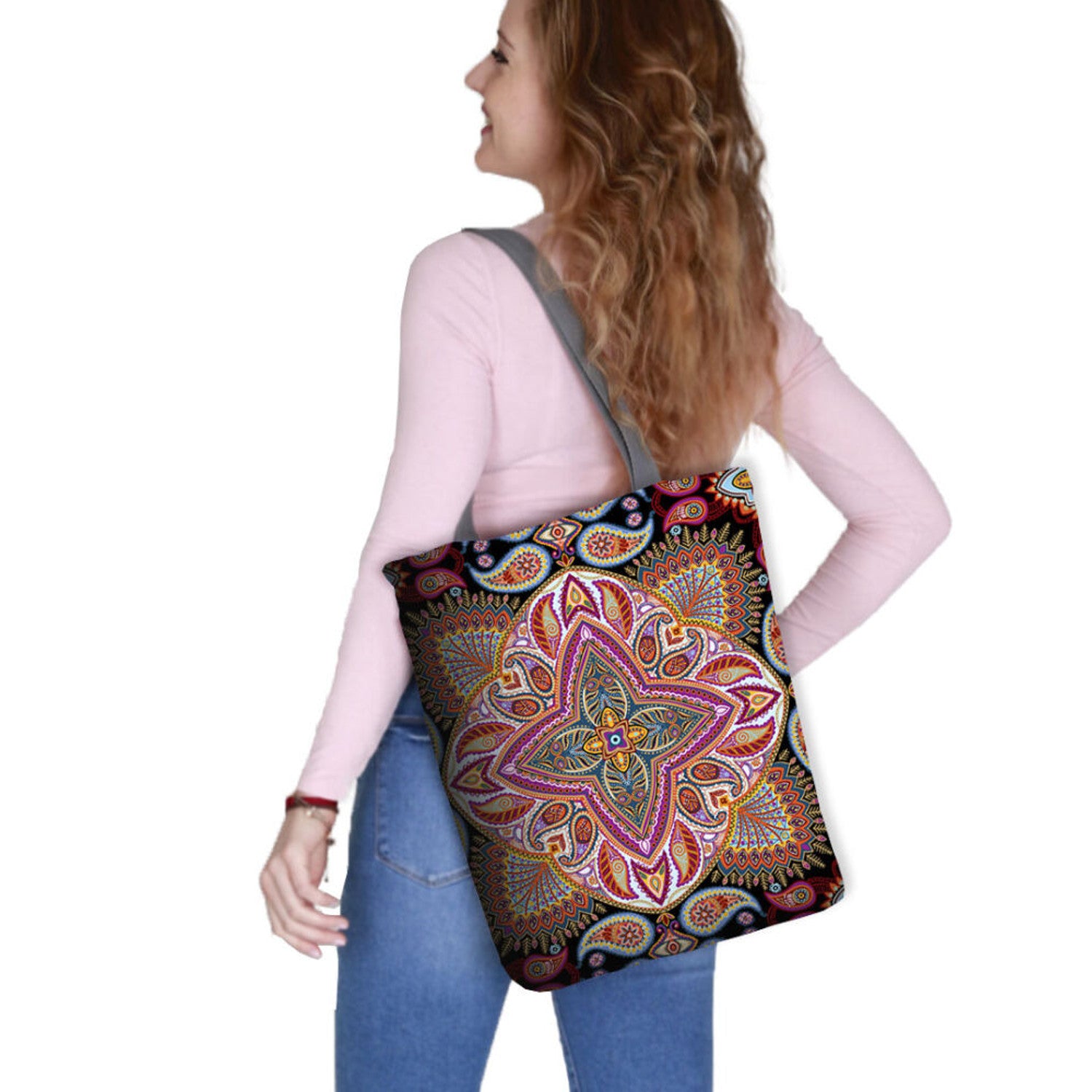 Torba płócienna na ramię, zamek błyskawiczny, wymiary 36x40cm, wzór nadruku Polka