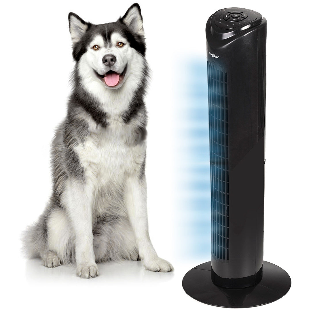 Wentylator ma 82 cm wysokości i nowoczesną, smukłą konstrukcję - dzięki czemu doskonale pasuje zarówno do domu, jak i do pracy i nie zajmuje dużo miejsca. Szeroka podstawa zapewnia odpowiednią stabilność urządzenia.